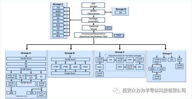 环境应力实验:按照军用电子器件环境适应性标准和汽车电子通用环境适应性标准,执行器件的应力实验,如高温反偏、高温栅偏压、温度循环、高压蒸煮、HAST、高温高湿反偏、高温高湿工作、间歇工作寿命、功率温度循环、常加速、振动、冲击、气密性等;