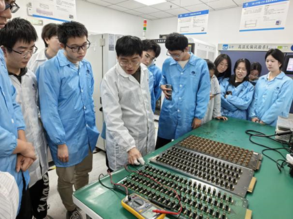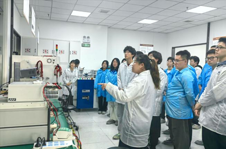 16:00,在可靠性主管郭智勇的带领下,师生们参观了公司的实验室,了解实验室的日常工作流程、各种先进设备的应用以及公司在可检测服务方面的成果。同学们对实验室的先进设备和严谨的工作流程表现出了极大的兴趣,纷纷就自己所关心的问题进行提问,郭主管也耐心地一一作答。